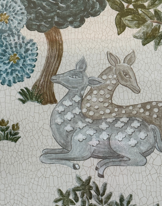 Sanderson 'Caspian - Cream & Nettle' | Unique Deer Woodland Wall Art in Black & Gold Frame