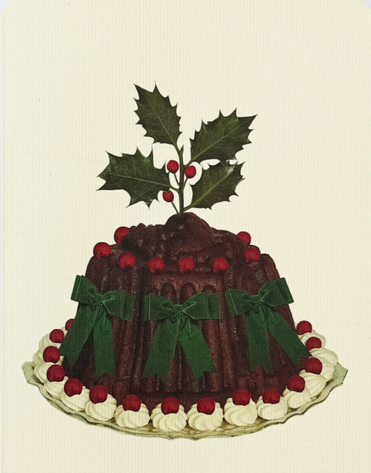 Christmas Plum Pudding Green Velvet Bows Greeting Card | Alexandra Simms for Canonbury Press