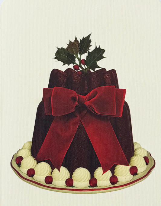 Christmas Plum Pudding Red Velvet Bow Greeting Card | Alexandra Simms for Canonbury Press