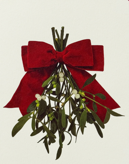 Classic Mistletoe and Red Ribbon Festive Greeting Card | Alexandra Simms for Canonbury Press