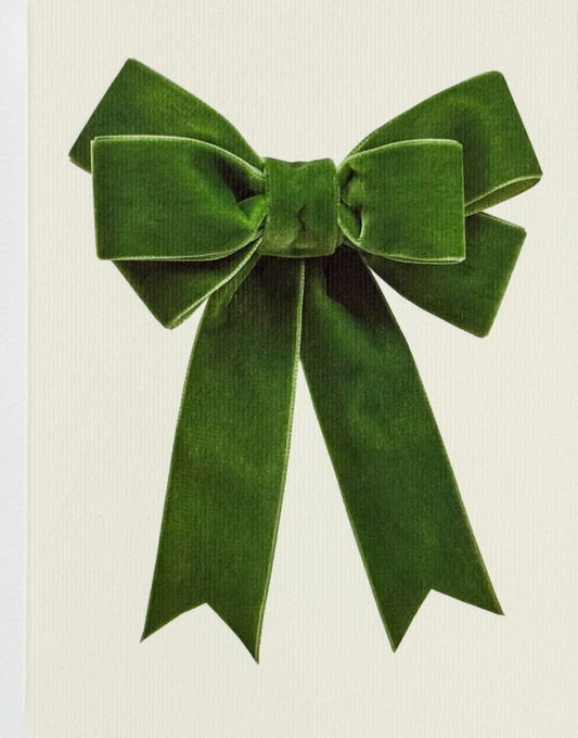 Green Plush Velvet Bow Christmas Greeting Card | Alexandra Simms for Canonbury Press