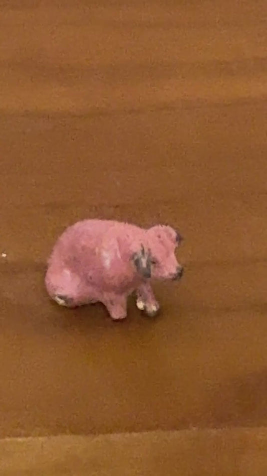 Miniature Glossy Sitting Pink Piglet with Brown Ear Patch | Rare 1920s Britains Lead Toy Collectible
