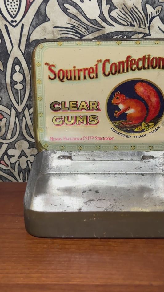 Characterful Vintage Woodland Squirrel Confections Tin | 1930s Stockport Confectionery Collectable