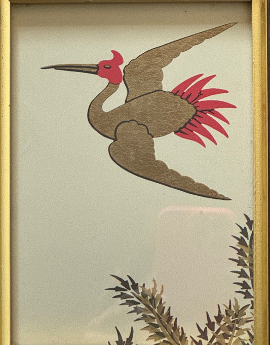 Osborne & Little 'Jagmandir' | Sand Gold Crane & Foliage Framed Print in Brown & Gold Vintage Frame