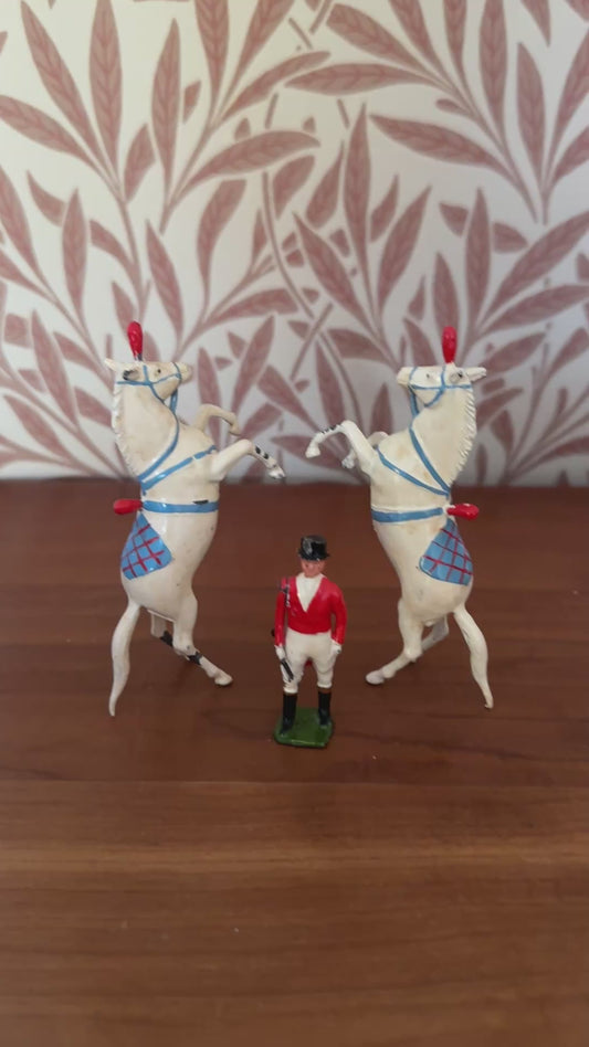 Rare Britains Ltd 1936 Circus Figures Collectable Set | Two Prancing Horses & Colourful Ringmaster Hand Painted Lead Figurines