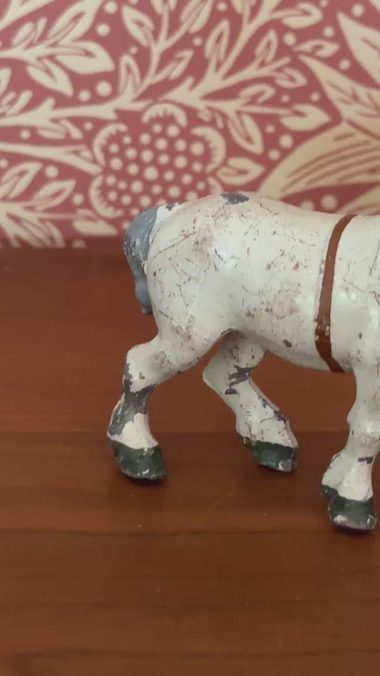 Rare White Shire Cart Horse with Red Dressage Detail Figurine | Vintage 1920s John Hill & Co Lead Farm Toy Collectible