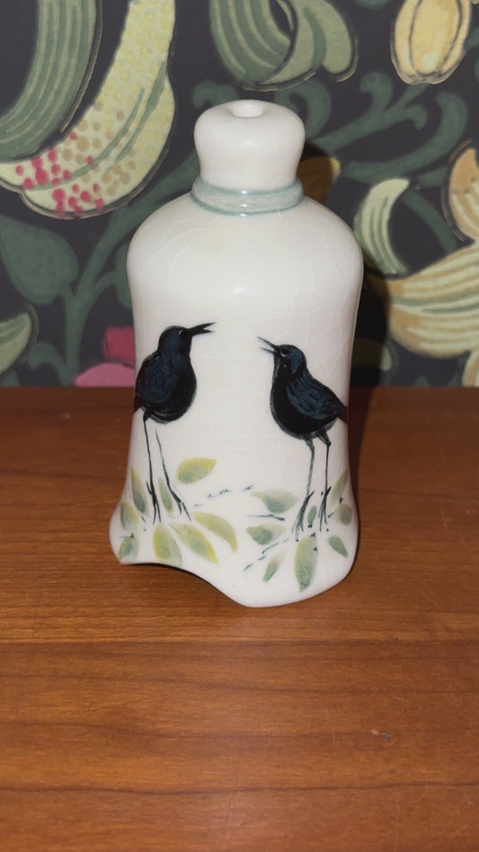 Stuart Bass Bell Shaped Pie Funnel with Blackbird & Green Foliage | Studio Pottery Collectable