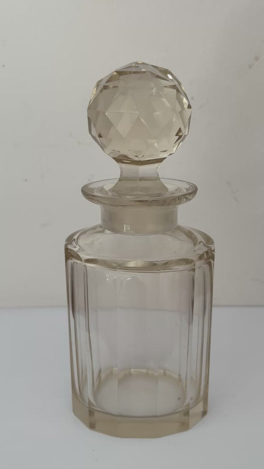 Medium Pretty Rare Vintage Cut Glass Perfume Decanter | Light Peach Vanity Bottle with Original Decorative Stopper