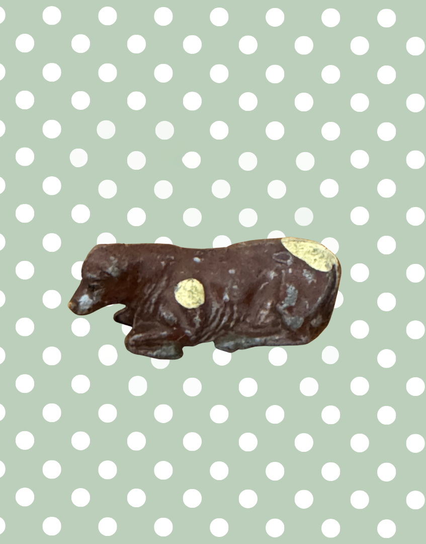 Medium Vintage Brown and Cream Laying Down Cow or Calf | 1920s John Hill & Co Lead Farm Toy Collectible