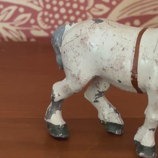 Rare White Shire Cart Horse with Red Dressage Detail Figurine | Vintage 1920s John Hill & Co Lead Farm Toy Collectible